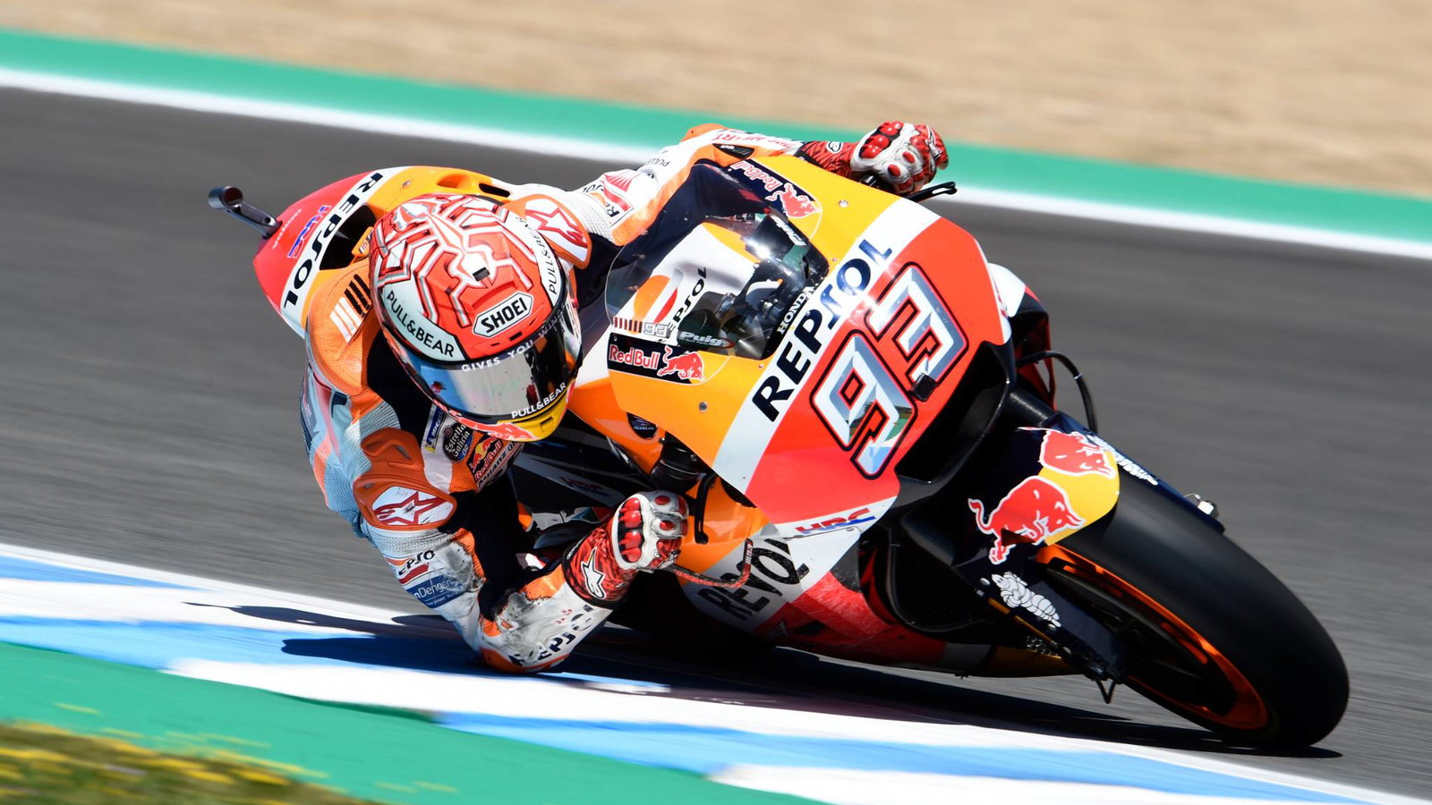 Marc Marquez put his name at the top of the time sheets in an eventful MotoGP warm-up session for his Repsol Honda team, as both the reigning world champion and team-mate Dani Pedrosa suffered falls on Sunday morning at Jerez.