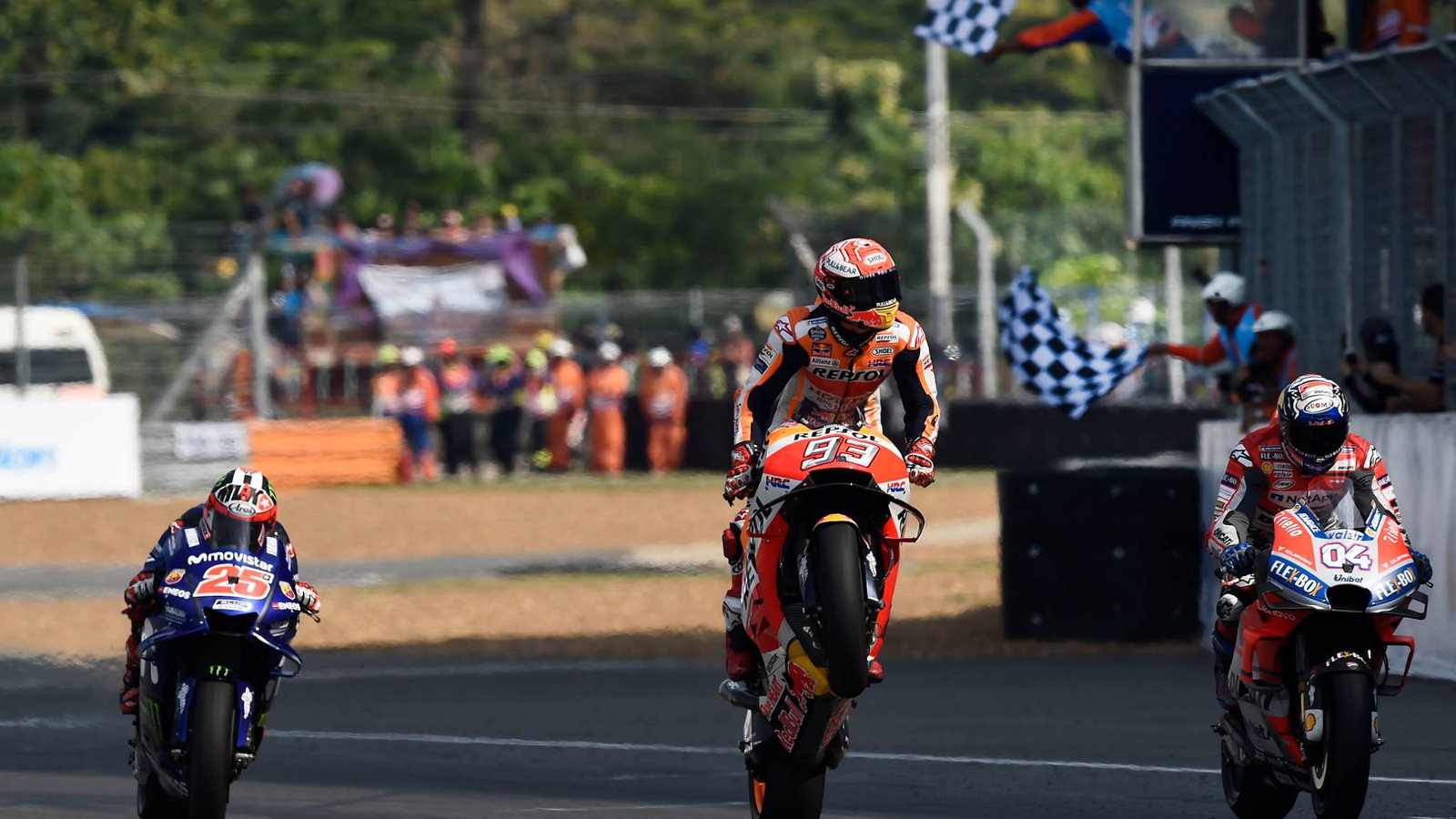 The Repsol Honda rider sealed his second successive race win after Dovizioso ran slightly wide at the final corner, enabling Marquez to cut back underneath to clinch a narrow victory at the Chang International Circuit.