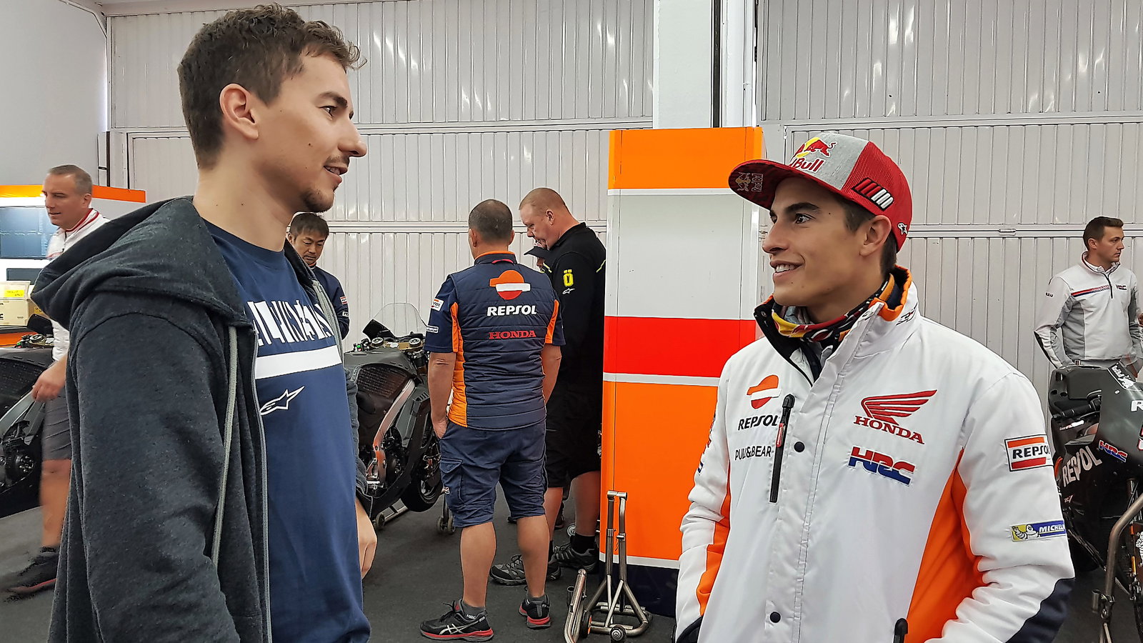 The pictures show triple MotoGP champion Lorenzo with Repsol Honda's reigning champion Marc Marquez, posing for Dorna, leaving the Repsol Honda pits on an RC213V for the first time, plus his first conversations with HRC engineers and crew chief Ramón Aurín.