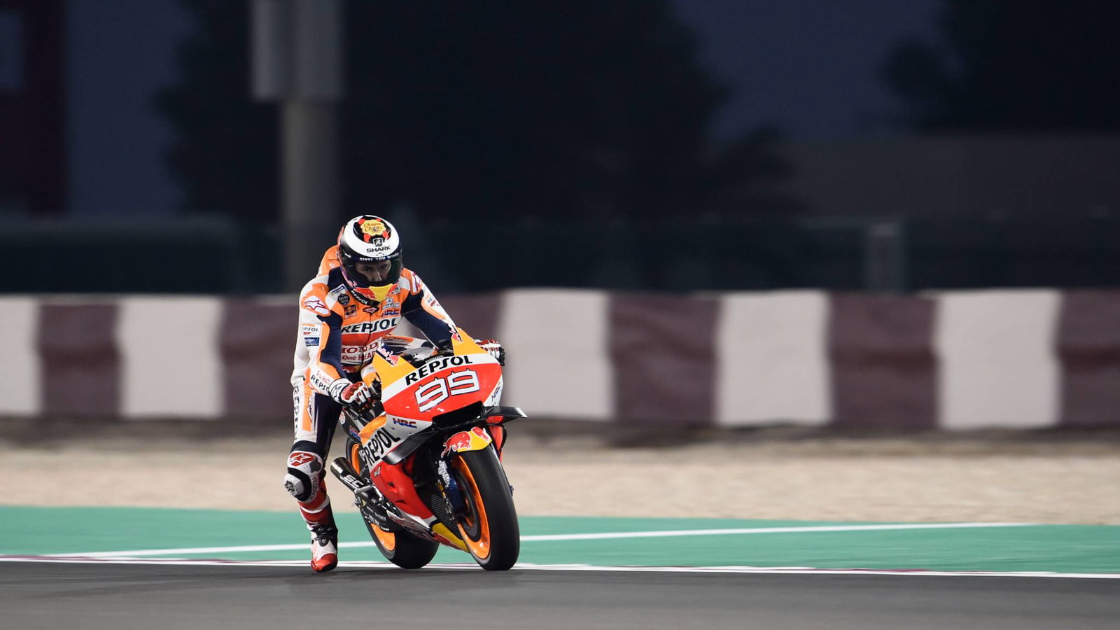 Jorge Lorenzo rode his belated first MotoGP laps of 2019, and made his debut in full Repsol Honda colours, during the start of testing in Qatar.