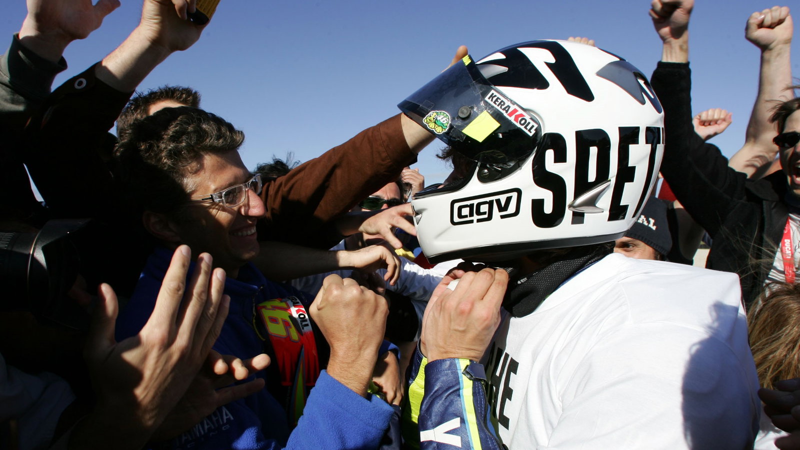 "There have also been special liveries, during the Fiat years for example, like the Abarth one at Phillip Island, where we also had a special Aborigine helmet. Or for 50 years of Yamaha in 2005, where we did a yellow version of the bikes for Laguna Seca and white for Valencia recalling the historic Yamaha graphics of the '70s-'80s with Baker, Kenny Roberts."