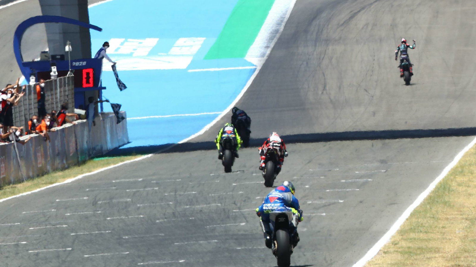 Team-mate Alex Rins, who missed the opening Jerez race due to a dislocated shoulder, finished in tenth place. Unlike Mir, Rins tried the new Suzuki holeshot device in the race.