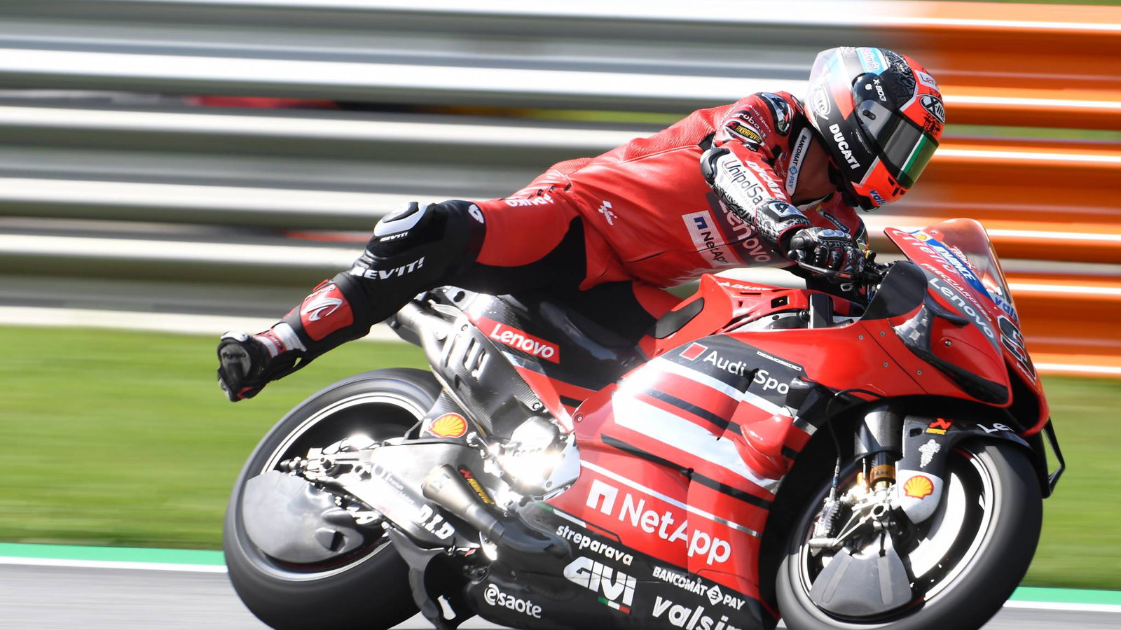 Adding to the braking complications for Petrucci is that he's unable to use the rear to stop the bike.