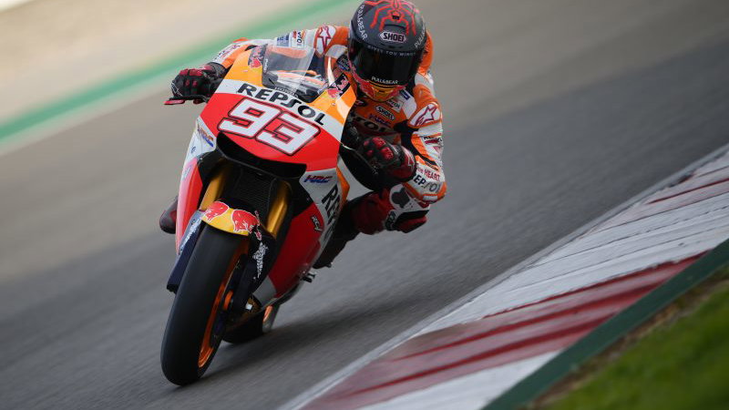 With the testing regulations preventing use of a RC213V race bike, Marquez took to the Portuguese Grand Prix venue using the production RC213V-S version and 'track day' style tyres. Younger brother Alex Marquez was also riding.