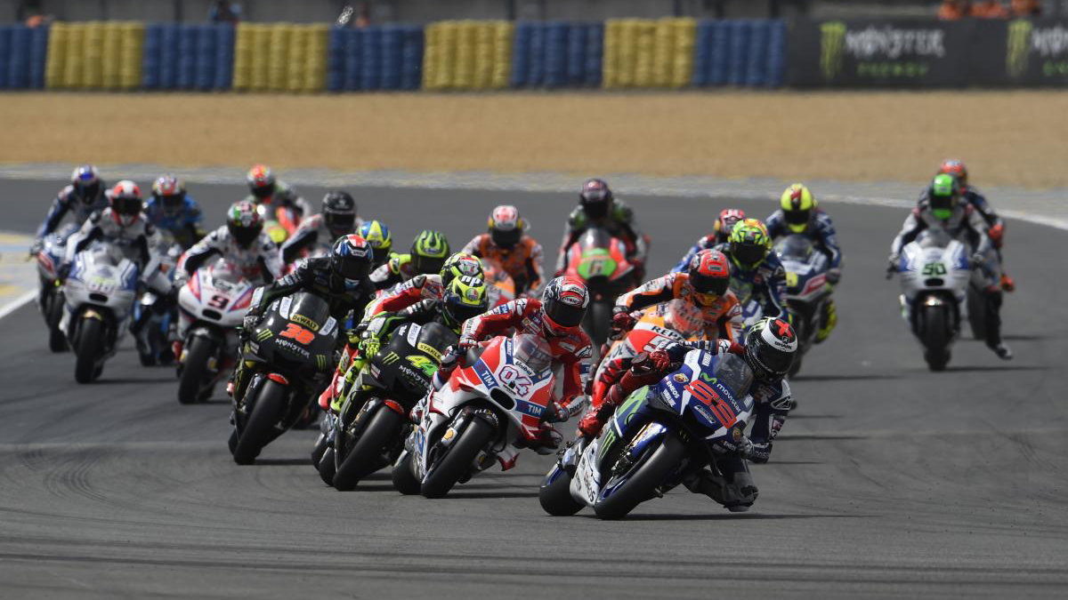 Lorenzo, who clinched his first ever pole start in the premier class at Le Mans, rocketed into the lead from Dovizioso and Iannone, with Marquez in fourth.
