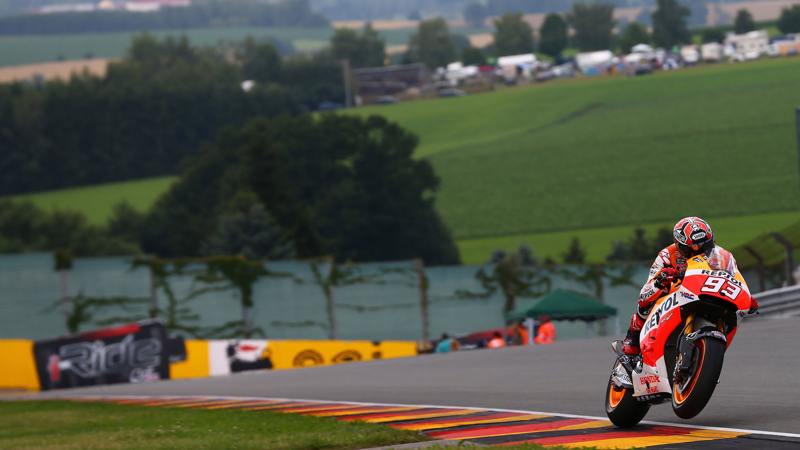 With wetter settings on his dry bike, Bradl was caught by Repsol Honda riders Marc Marquez and Dani Pedrosa within six laps, the pair disappearing into the distance in their battle for victory while Bradl faded backwards.