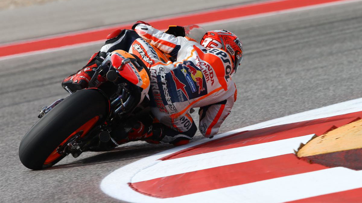 Marc Marquez continues his perfect Austin record with a runaway victory over Jorge Lorenzo and Andrea Iannone.