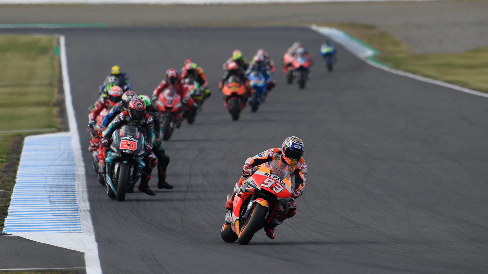 Petronas Yamaha’s Fabio Quartararo continues to catch the eye as he seals the Rookie of the Year honour with three rounds to spare, while Andrea Dovizioso continues to tighten his grip on the runner-up spot in the championship with a solid recovery ride to third place for Ducati.