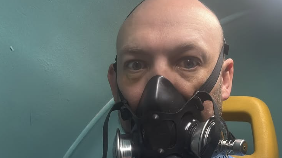 From inside a hyperbaric chamber, Hickman wrote: “Doing my best Bane impression?!