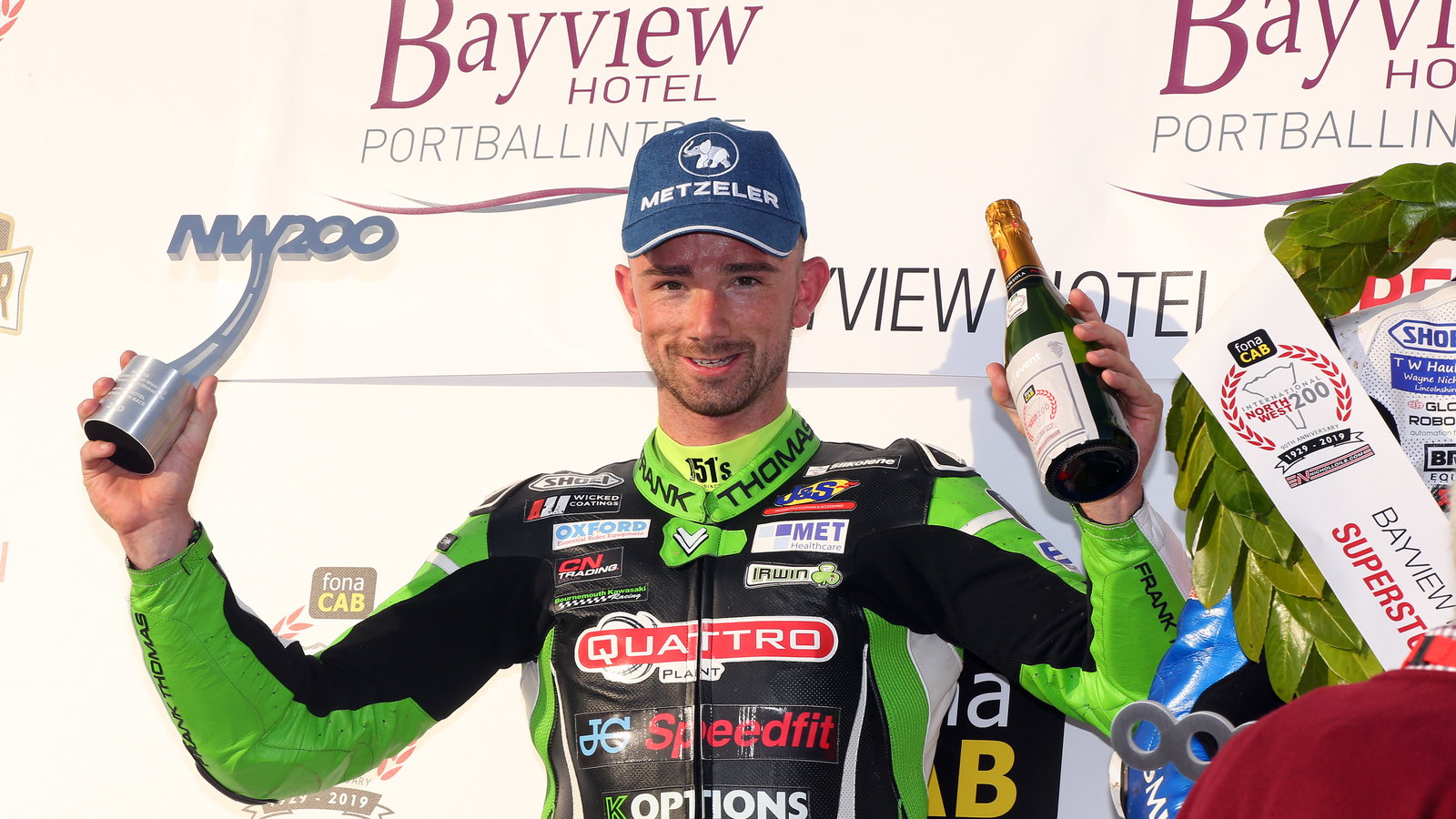 James Hillier has controlled from the front to secure his maiden victory at the North West 200 in the Superstock race on the Quattro Plant Kawasaki as newcomer Richard Cooper secured a stunning second place.