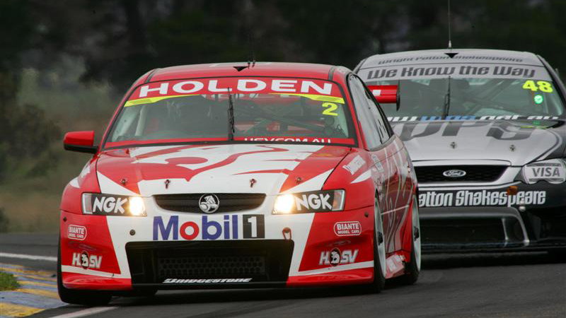 Pole-sitter Craig Lowndes put himself out of the running early by pushing hard in the lead and damaging his rear suspension and then was an innocent party as a Paul Dumbrell wheel bounced on to his Betta Electrical Falcon meaning Lowndes and team-mate Yvan Muller drove Peter Brock 1985 style with no front or rear screens.
