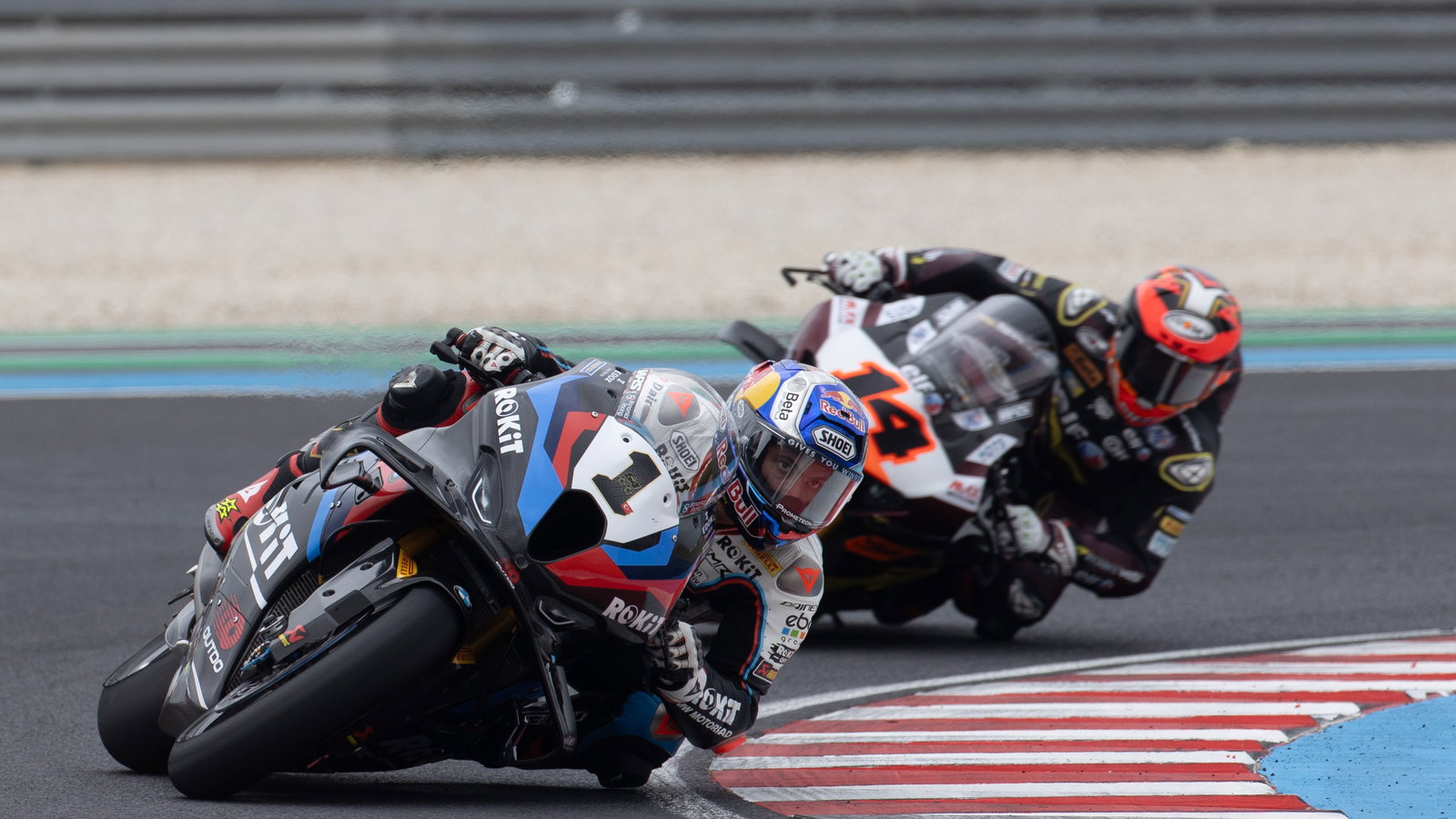Toprak Razgatlioglu leads Sam Lowes, 2025 Hungarian WorldSBK. Credit: Gold and Goose.