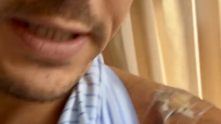Images show a wound to his shoulder.