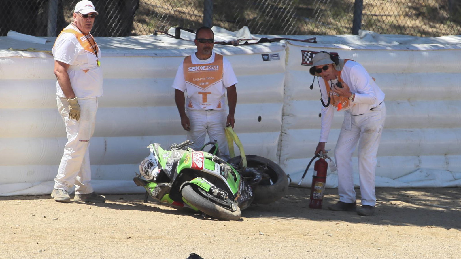The Puccetti Kawasaki rider had been battling inside the top 10 in the opening race of the US round when he was thrown into a high-side coming down the corkscrew turn on lap 20. The Turkish rider suffered a nasty fall down the track and was immediately taken to the track medical centre as a precaution.
